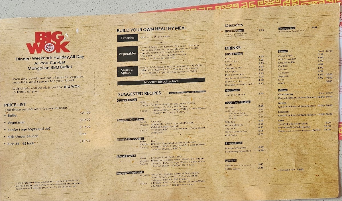 Welcome to BIG WOK Mongolian Bar-B-Q, where dining becomes an interactive experience! Located at 26771 Rancho Pkwy, Lake Forest, CA, this all-you-can-eat destination invites you to craft your meal from a delightful array of fresh ingredients. Customers rave about the selection of meats—beef, pork, lamb, and shrimp—combined with a variety of vegetables.